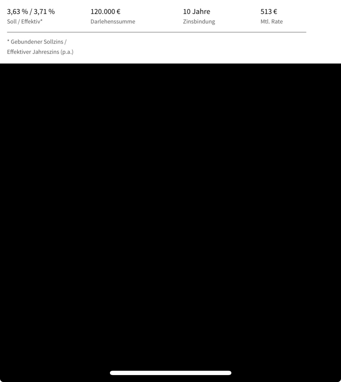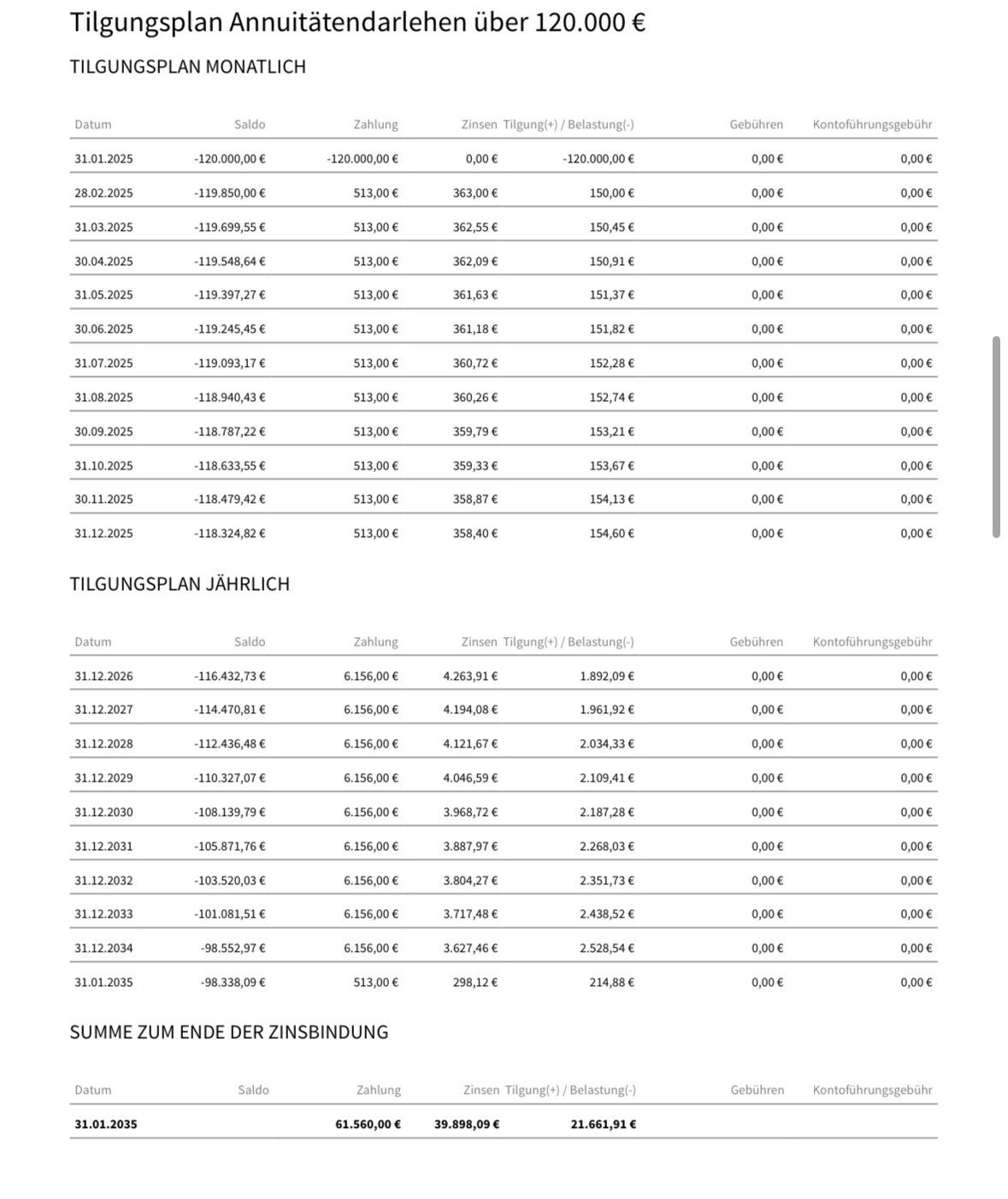 So Angebot liegt jetzt vor 120k für 513€ monatlich mit 10 Jahren Zinsbindung.