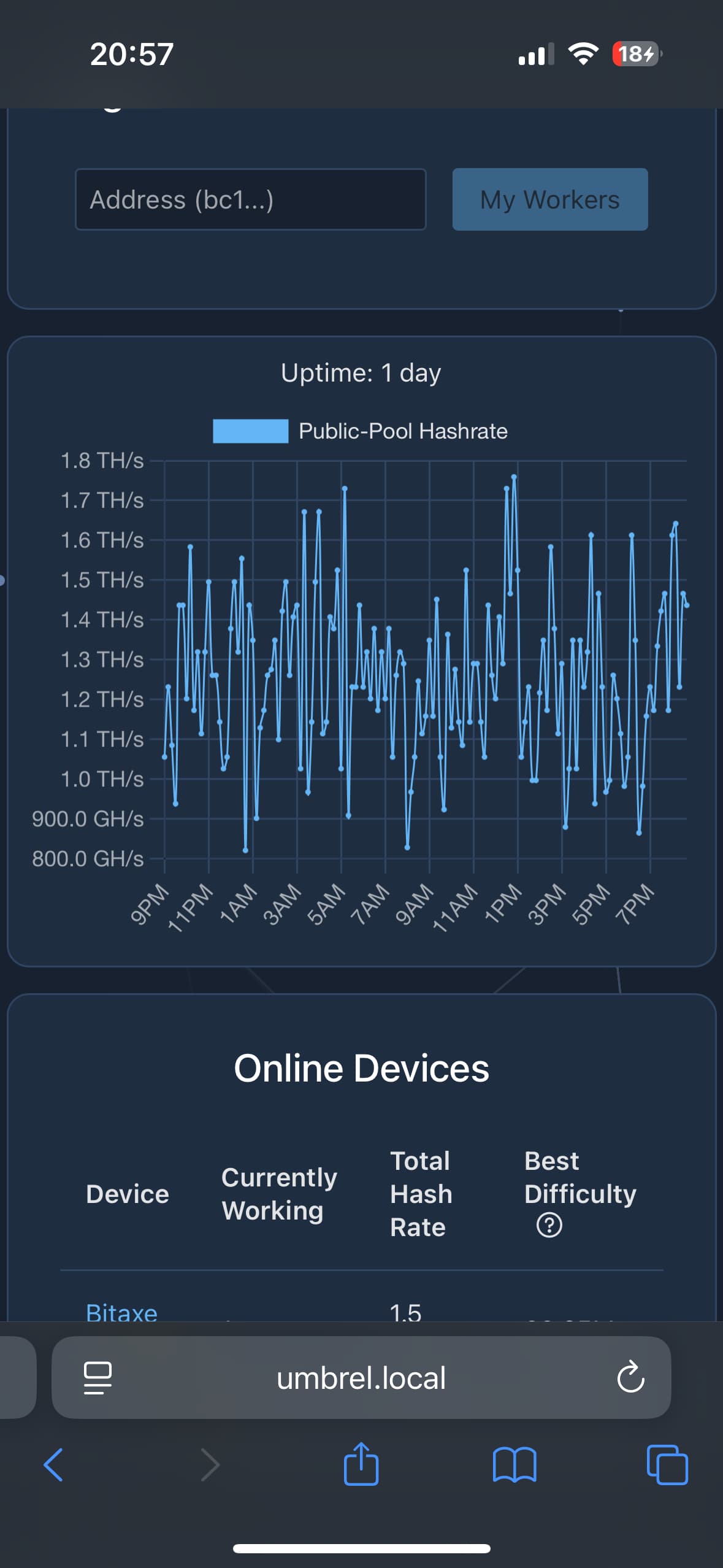 Am zweiten Tag ging der Average auf 1,32 th/s. Ich dachte mir, ist ja okay, weil Expected war ja auch 1,32 th/s. Heute, also 3 Tage später bin ich nur noch bei 1,28 th/s…