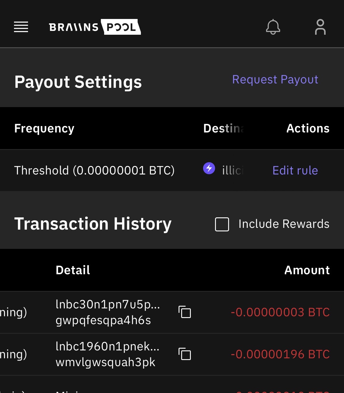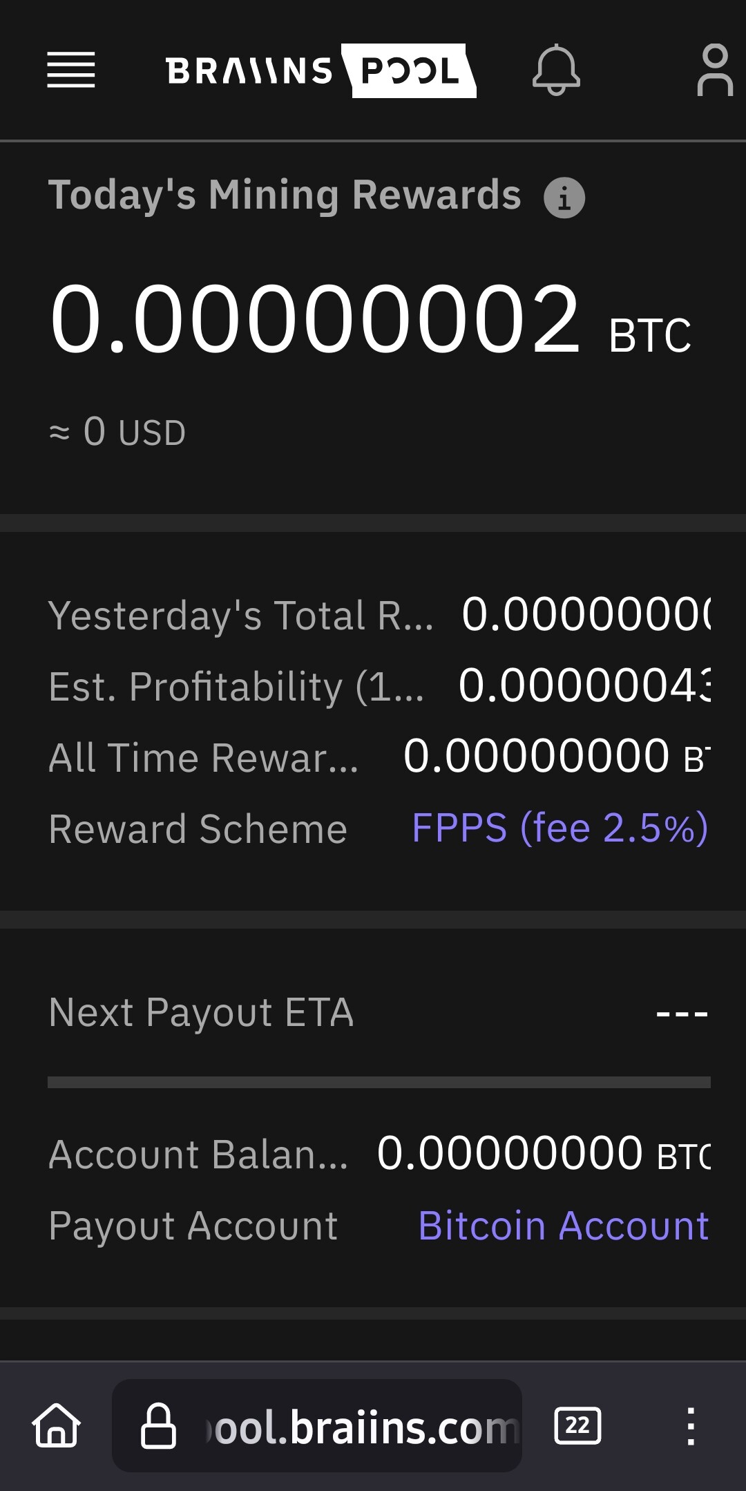 So hatte etwas wenig Geduld mit Braiins, aber jetzt funktioniert der Miner über Braiins. Muss da noch die genaue Lightning Adresse ausfüllen. Nachdem ich etwas Mühe hatte mit dem Verbinden (habe es komplizierter gemacht, als es eigentlich ist) muss ich erst mal in ein Kaffeehaus mich erholen.