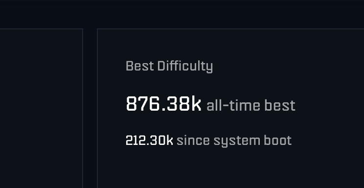 Wenn Du die “Best Difficulty” Deines Miners in Bezug zur “Network Difficulty” setzt, kannst Du erkennen, wie weit weg Du vom Finden eines neuen Blockes warst.