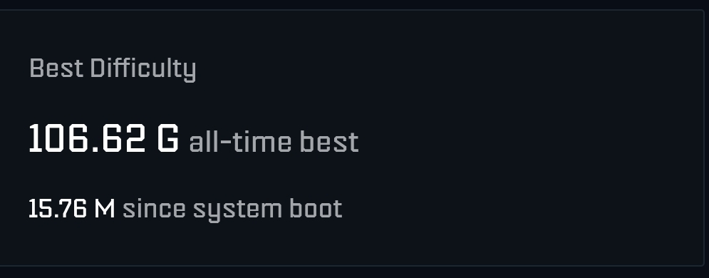 Ich muss hier ehrlich sein, der Wert kommt nicht von einem Bitaxe, das ist der Avalon Q gewesen. ABER: ich arbeite grade an einer geileren Version von Public Pool und habe grade tatsächlich eine Version geschaffen die innerhalb von kurzer Zeit recht starke diff Werte liefert bisher.