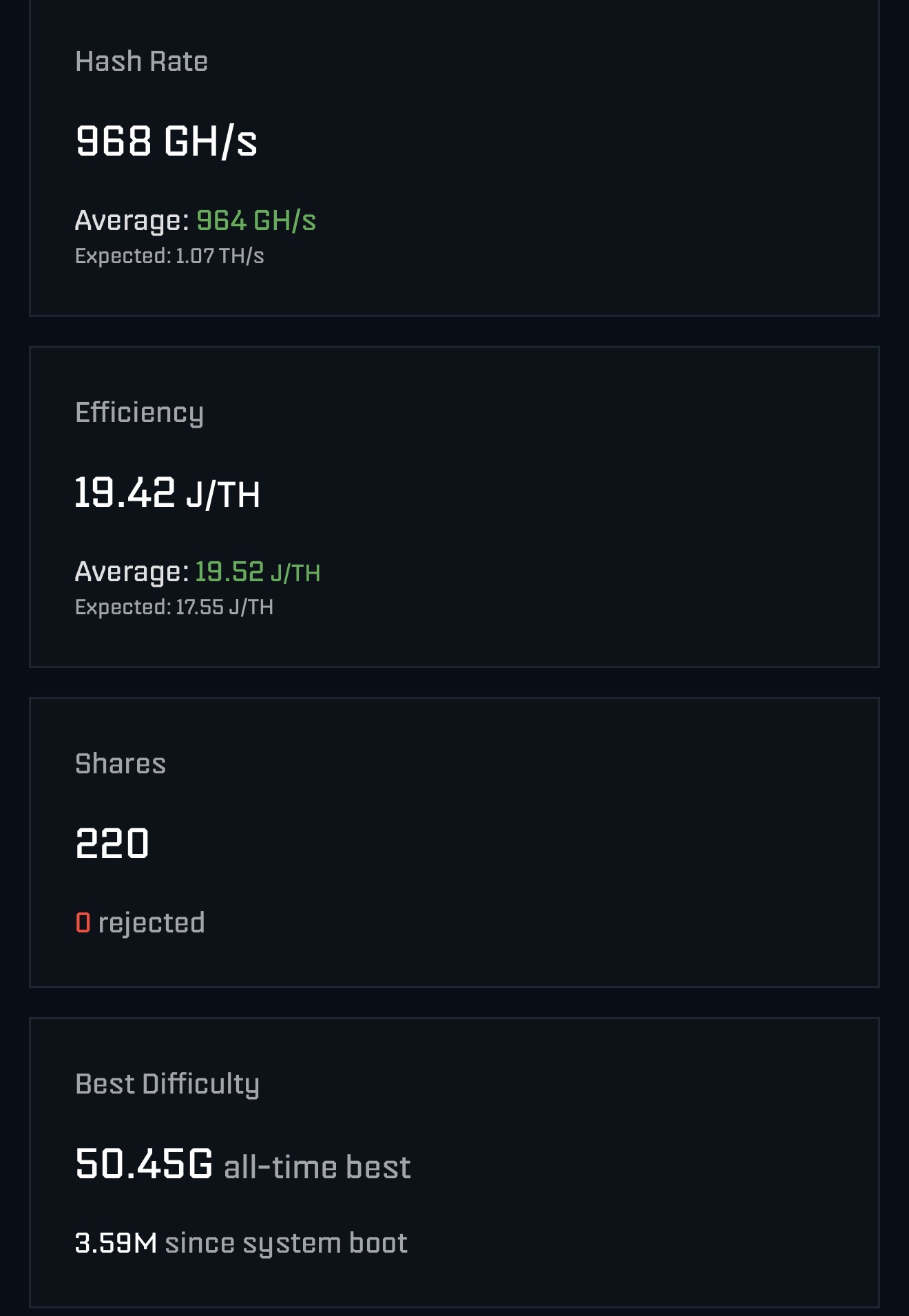Okey, kann man mit Bitaxe nicht vergleichen. Dann ist der Wert fast schon nichts besonderes ;)