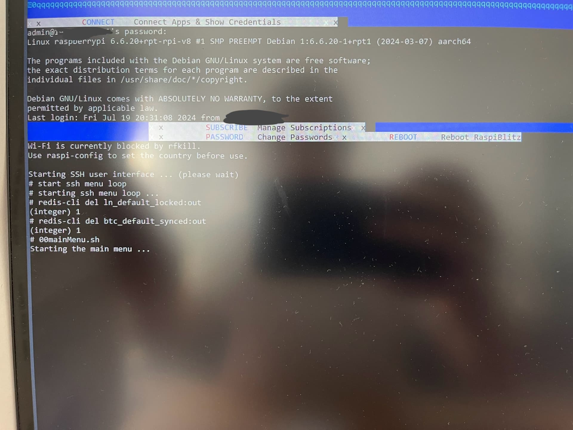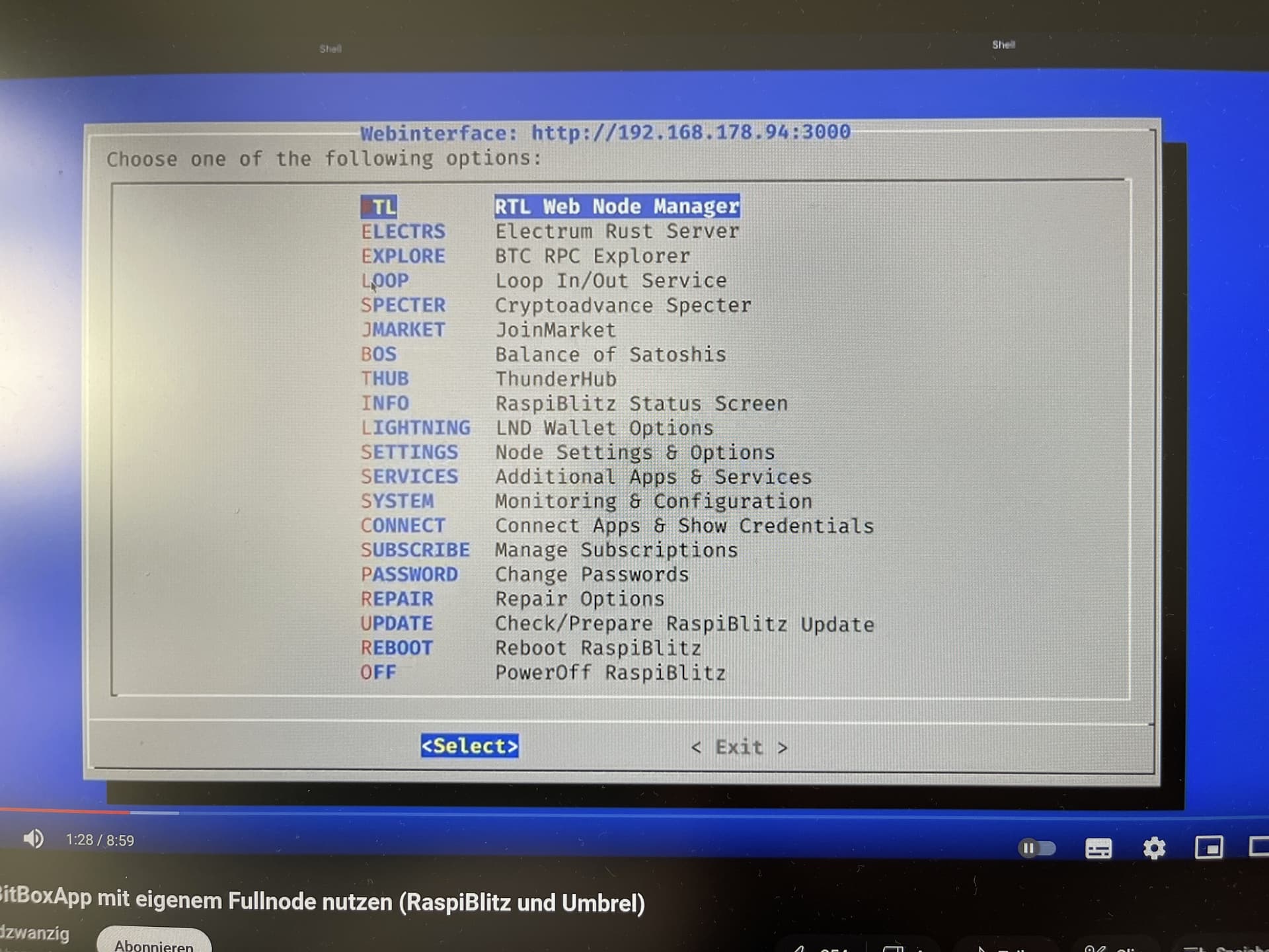 Dazu zwei Fotos. Eines von dem hier schon verlinkten Video und ein Bild von meiner Full Node, nachdem ich mich mit ssh admin usw. eingeloggt habe.