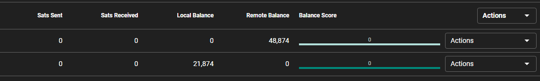 Ich dachte uns wird dann einfach 1 Channel angezeigt wo jeweils unter local und remote balance eine Zahl ungleich 0 steht. Aber vermulich soll das so sein wie oben beschrieben? Ich öffne jedenfalls gerade wieder den Channel zu dir.