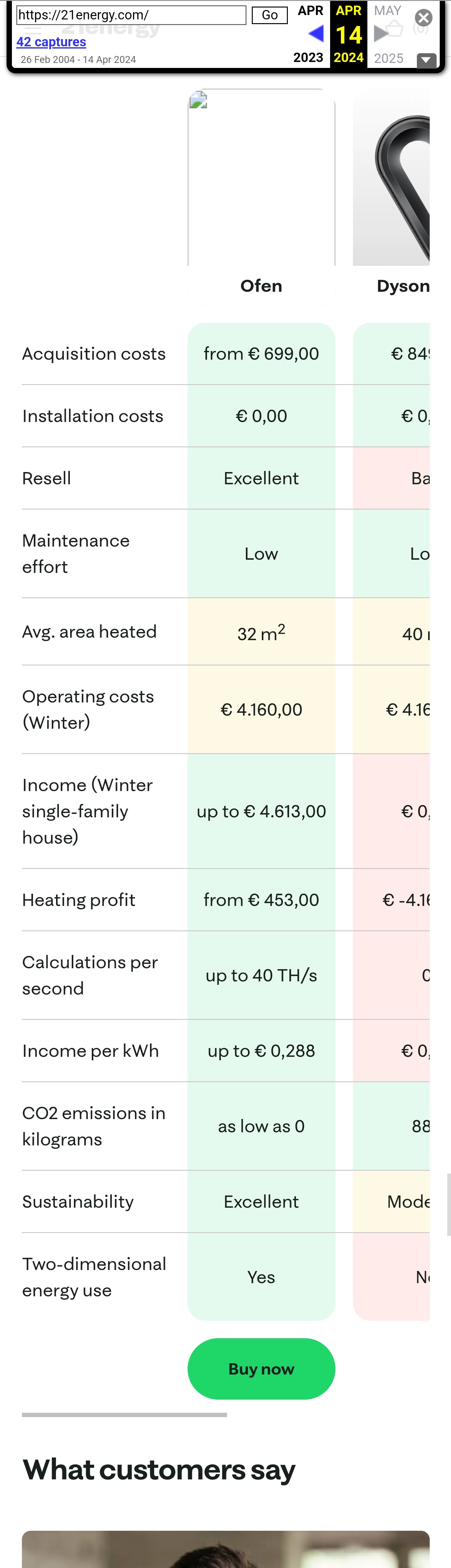 Aber zum Glück gibt es die Wayback Machine. Dort ist der Ofen am 14.04.2024 gegen 22:07Uhr noch mit „ab 699€“ bepreist. Jetzt am 20.04.2024 plötzlich mit „ab 990€“.