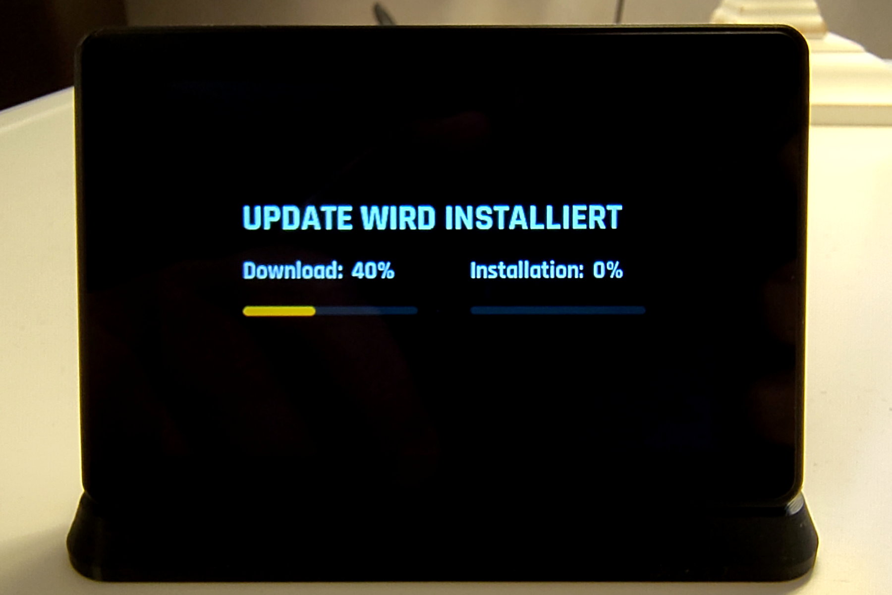 Am Laptop kann ich es nur bei Betrieb laufen lassen, an der Steckdose nervt das Kabel (nicht mich, aber ihr wisst schon wen) … und wenn ich ein passendes Akku Pack hätte was farblich und von der Größe so passen würde,dass es hinter das Display passen oder das Terminal draufstehen könnte, dann sähe das mit kurzem Kabel richtig aufgeräumt aus.