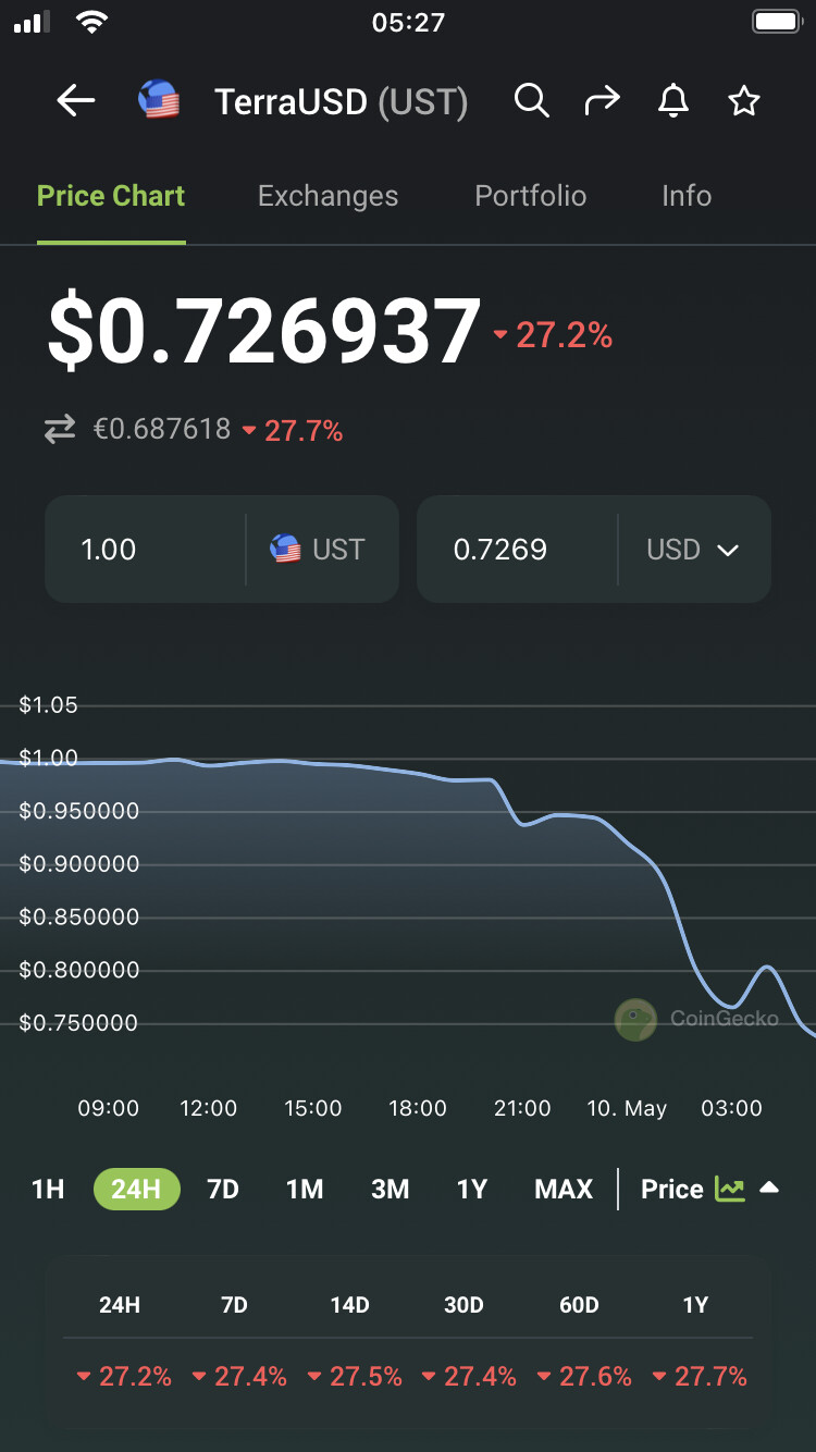 Also Luna sieht noch ein gutes Stück schlimmer aus, die werden grad massenweise gedumpt, um UST wieder hochzubekommen… Können diesen Mechanismus Hedgefunds nicht ausnutzen? ![]()
