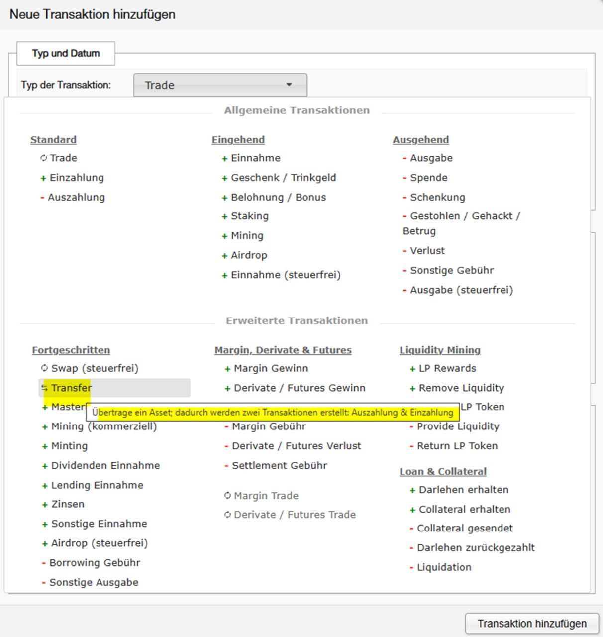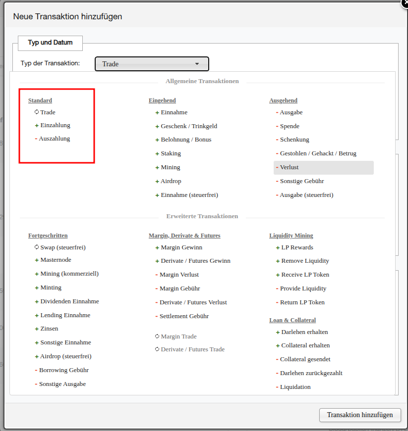 (siehe FAQ „Meine blockchain Transaktionen wurden nicht korrekt importiert. Warum?“)