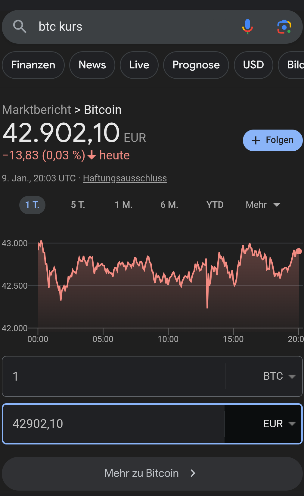 Einfach bei Google BTC Kurs eingeben. Schlichter gehts doch dann echt nicht? Außer das Widget von oben vlt