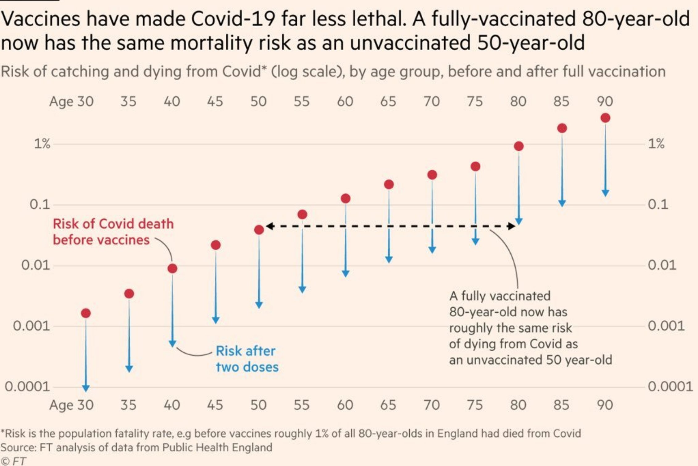 Meine Großeltern sind über 80 und hatten sich beide, vor der Impfung, infiziert. Sie hatten (zum Glück) keine Symptome. Wieso stellt sich jetzt niemand ins Fernsehen und sagt „Ja eine Infektion für über 80-jährige ist eh ungefährlich, sieht man ja in diesem Beispiel. Deshalb sollten wir das alles auf die leichte Schulter nehmen.“