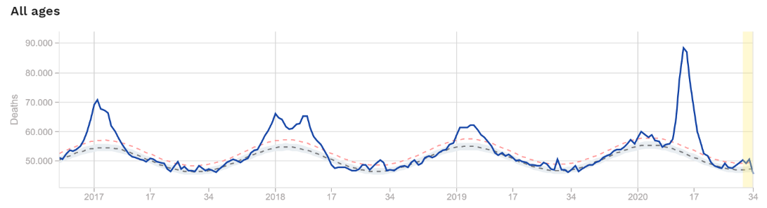 Die Übersterblichkeit liegt klar über dem Vorjahrsniveau, in ganz Europa um etwa 80.000 - 90.000 Menschen. Es handelt sich also um eine exzeptionell gefährliche Infektion. Ein Parameter verdient in meinen Augen besondere Aufmerksamkeit: