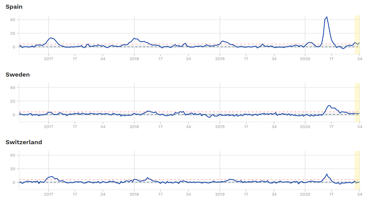 Schweden hat im Internationalen Vergleich kein größeres Problem mit der Übersterblichkeit. Da ich nicht alle Länder in ein Foto bekomme, empfehle ich selbst zu durchforsten. Die Gründe dafür sind komplex und z.T. spekulativ. Ich lasse dies an dieser Stelle einfach mal so stehen.