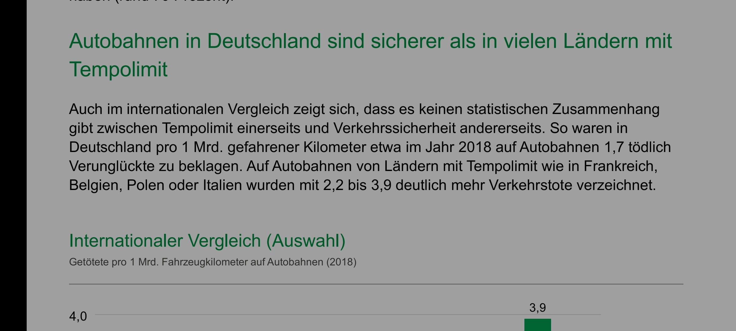 Das Schöne ist ja, dass Studien genau das Gegenteil zeigen. Trotz höherer Verweildauer haben Länder mit Tempolimit niedrigere Unfallraten.