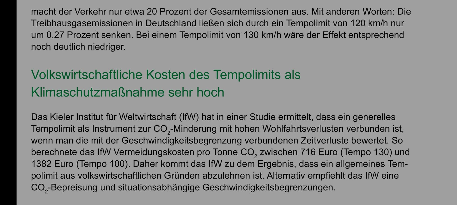 Ach so und wie steht ihr denn nun zur geschwindigkeitsbegrenzung bei Elektroautos die mit erneuerbaren getankt werden?