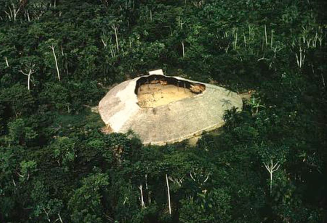 Mag mich an eine Doku erinnern. Es war aber im Südamerika Dschungel - irgendwo. Ein Kreis die Hütten nach Aussen geschlossen, im Inneren offen zum gemeinsamen Platz. Da es ein Sammler und Güter Gesellschaft war, wurden diese alles in der Gemeinschaft geteilt. Ebenso wurde damit privates und öffentliches für alle einsehbar. Freude, Konflikte, Sex, Geburt, Tod, Trauer, Tanz, Essen …
