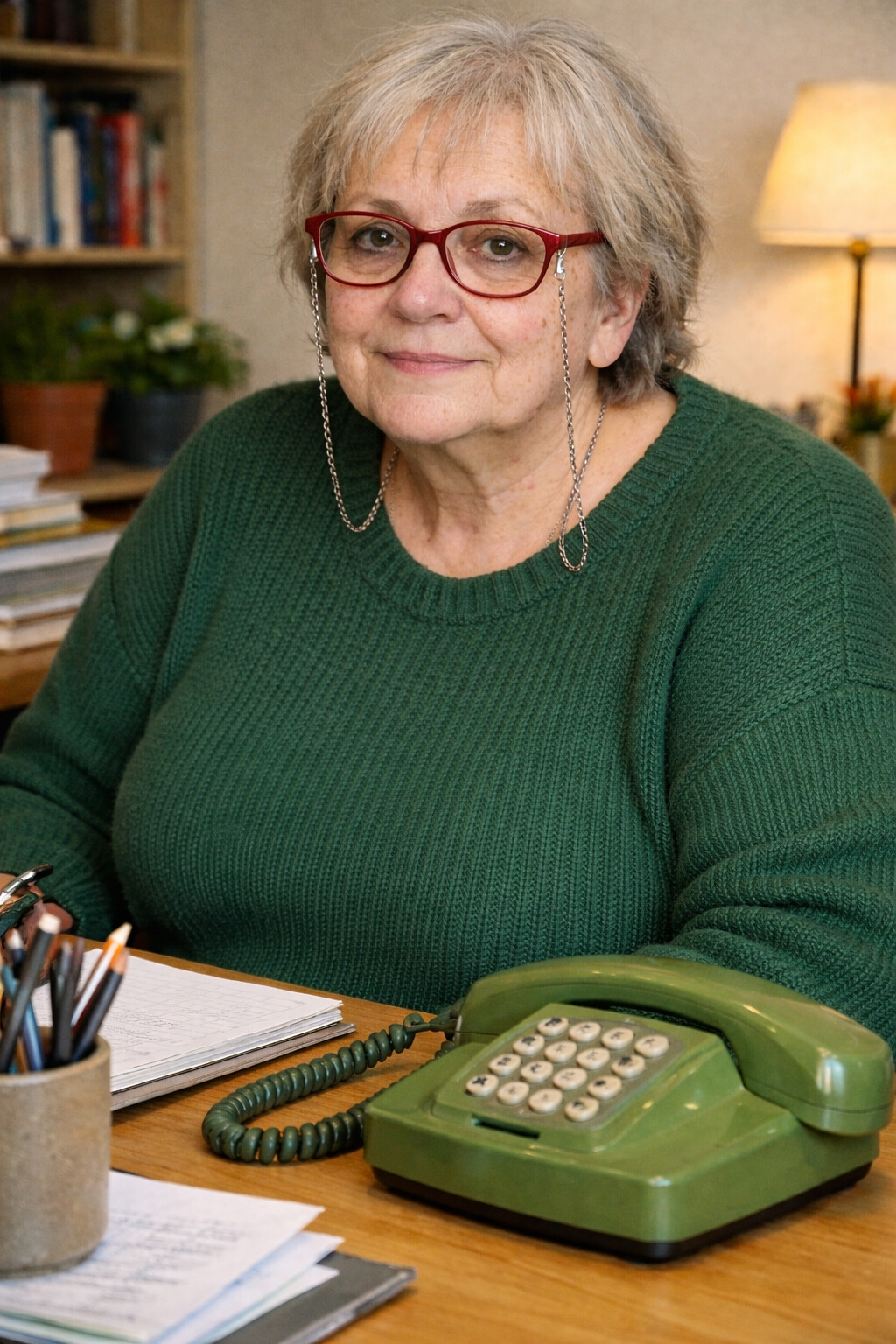 Sie sollte aber schon ein Drehscheibentelefon haben.