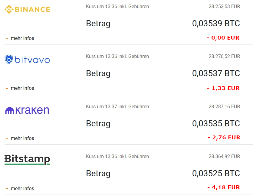 Oder man gibt einfach den effektiven Gesamtbetrag in EUR an, der nach Abzug aller Gebühren auf der Wallet landet.