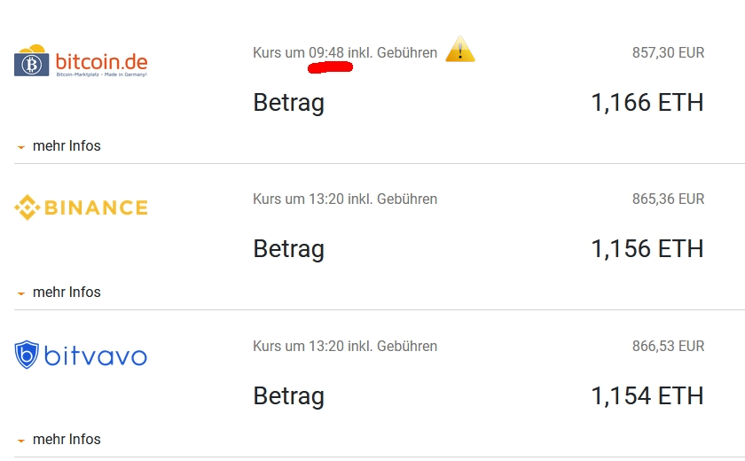 Heute zufällig beim Rumspielen beobachtet: Ein Anbieter ist auf Platz 1 gelandet, weil seine Kursdaten völlig veraltet waren und man diesen Kurs vermutlich nicht mehr bekommt, wenn man auf die Anbieterseite geht!?