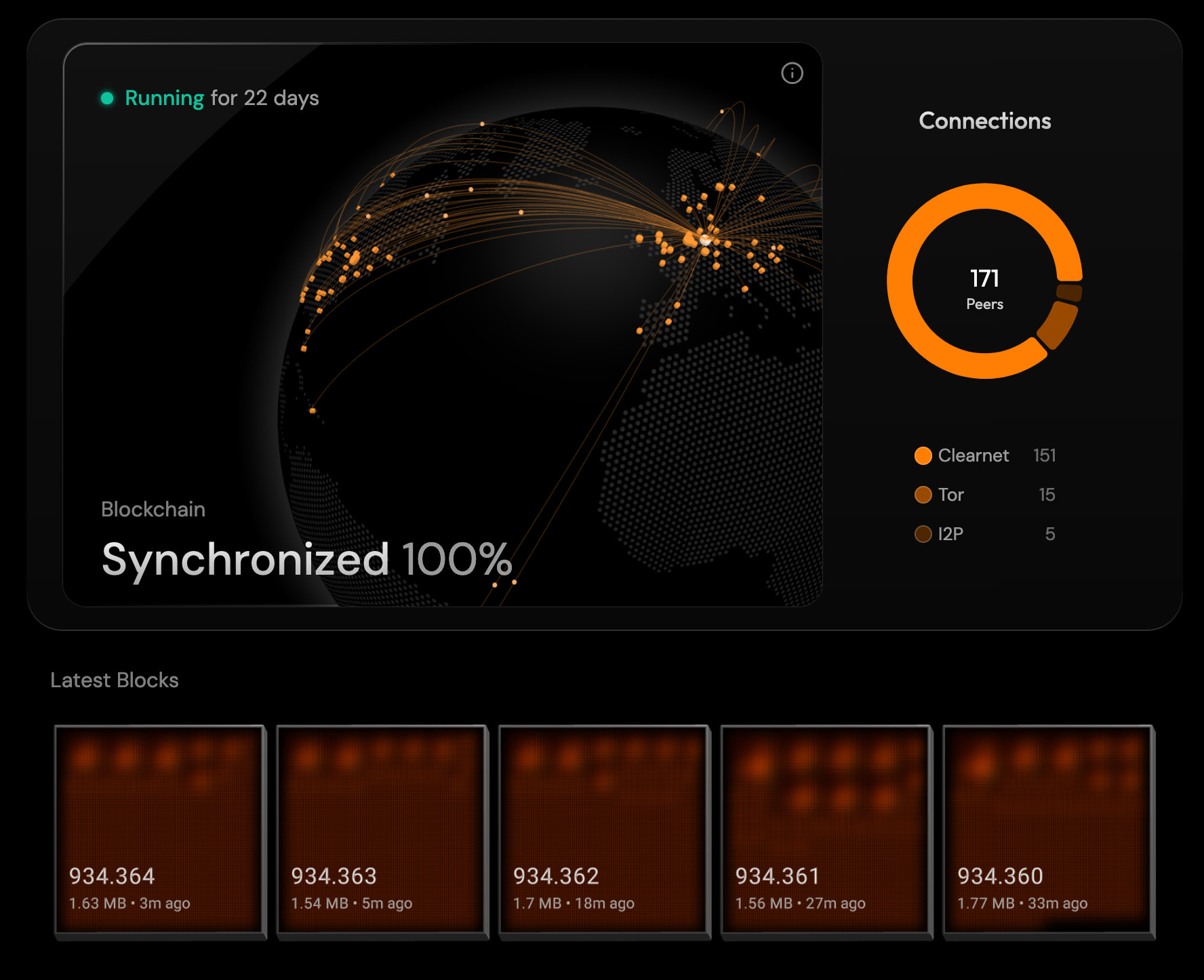 Nachdem es längere Zeit stagniert hatte, geht es nun doch schneller voran. +190 Connections sind geschafft. Die RAM-Belastung meiner Node bleibt dagegen fast unverändert ![]()