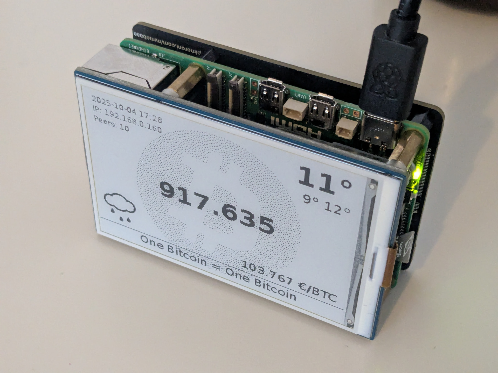 Wenn man sich die Node selbst zusammenbastelt, dann bleibt die Begeisterung länger vorhanden und man kann sie individuell gestallten und am Schreibtisch haben und nicht in einer Ecke verstauben lassen. Ich wollte meine Node sehr kompakt haben und mit einem Display mit einem Dashboard. Habe mich für ein e-ink Display entschieden, der sich bei jedem gefundenem Block aktualisiert mit einem selbst programmierten Dashboard in Python. Das macht die Node nützlich im Alltag und steht nicht nur einfach so rum.