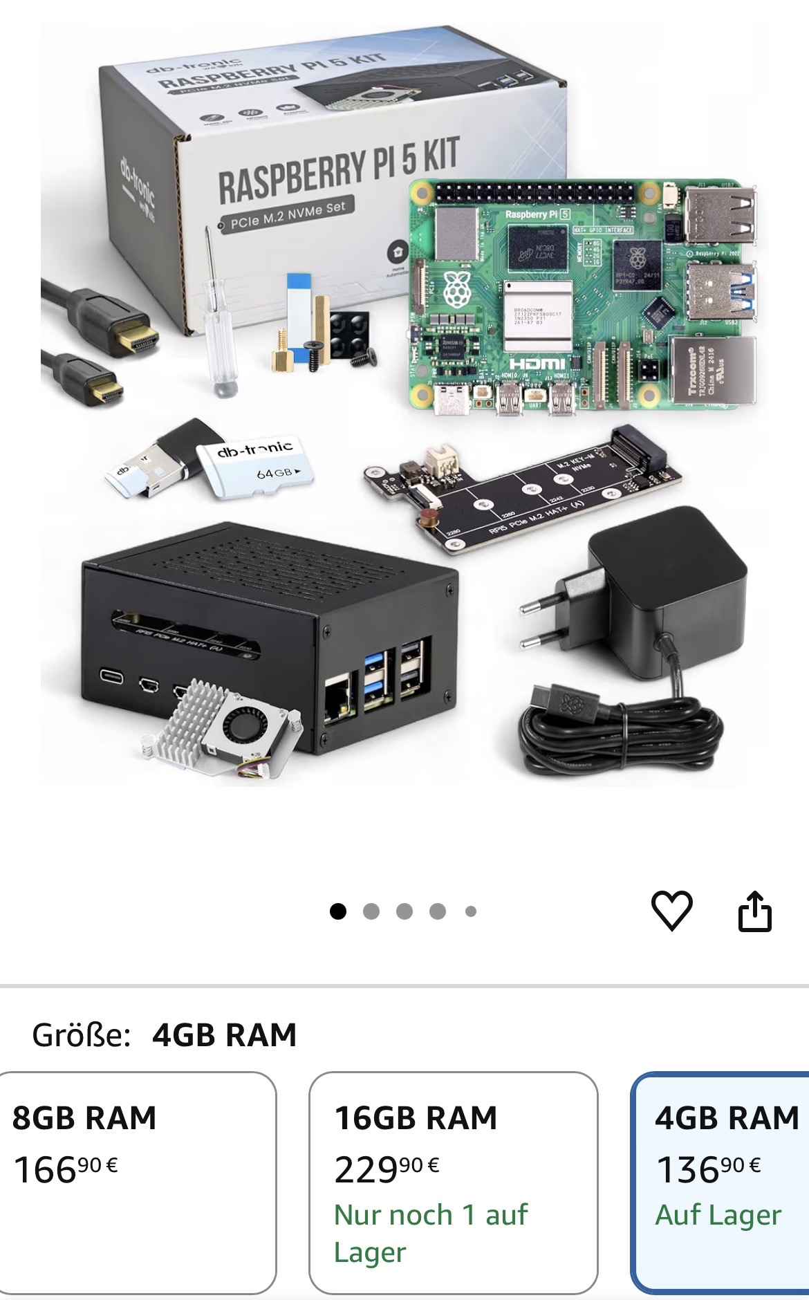 Außerdem sind 4GB etwas wenig. Je nachdem was du auf deine Full Node laufen lassen willst, brauchst du mehr. Ich würde sagen min. 8GB. Willst du auch sachen wie mempool.space darauf laufen lassen oder auch eine liquid full node, dann gehts eher richtung 16GB. Das ist auch etwas was du später nicht mehr nachrüsten kannst. Ich selbst bereue es z.B. 8Gb statt 16 GB gekauft zu haben. 4GB sind definitiv zu wenig.
