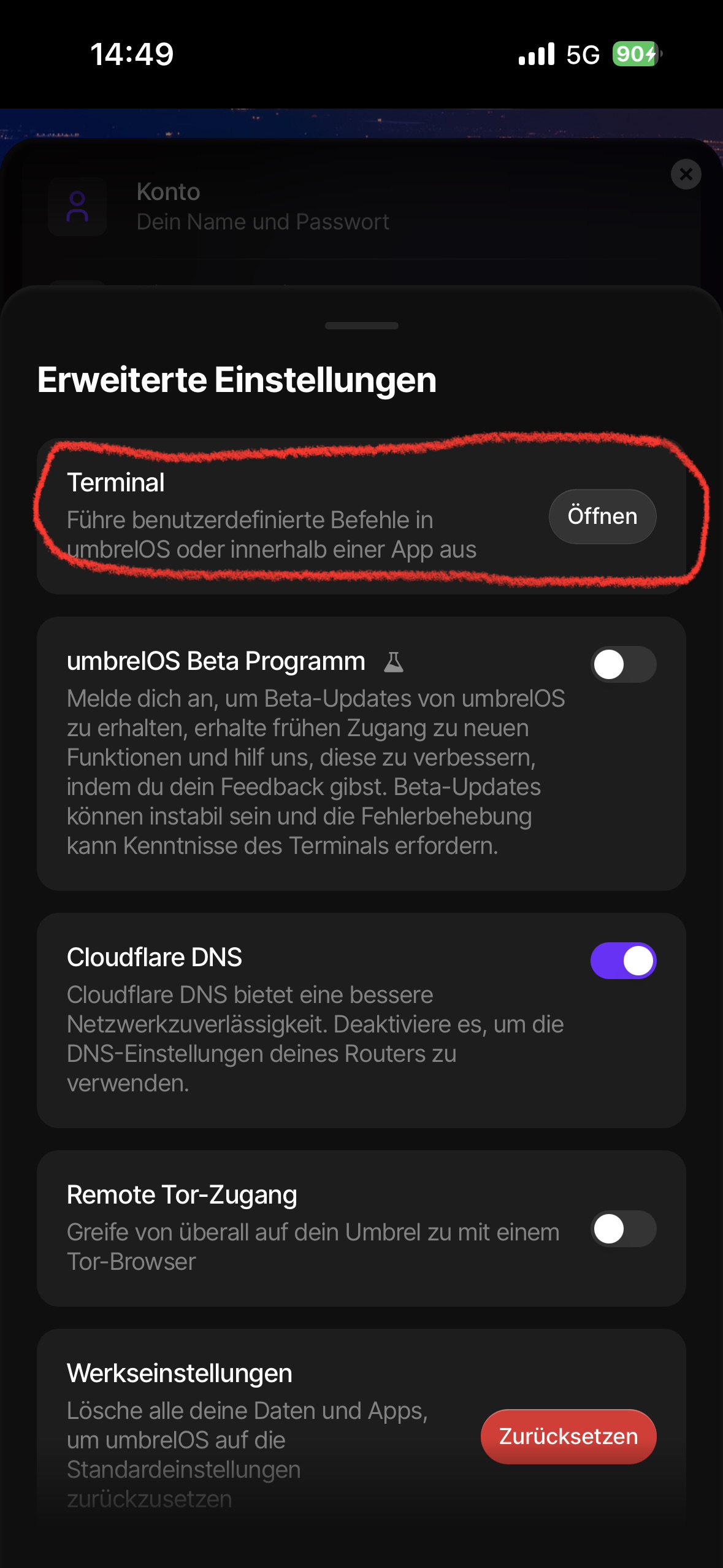 Punkt 17 ging bei mir auch nicht. Ich hab danach Umbrel einmal neugestartet👍