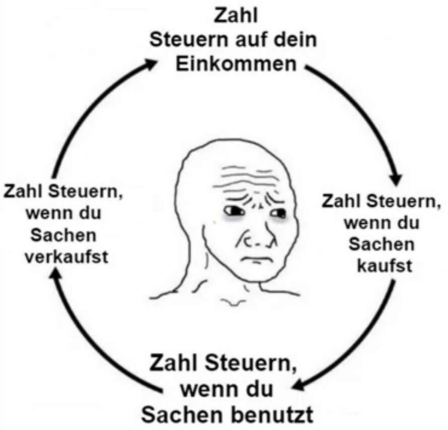 Es ist sogar noch schlimmer. Die reale Last mit Doppelt- und Dreifachsteuer. liegt über 70%. Heißt, von 100 EUR erarbeiten darf ich nicht mal 30 EUR behalten.