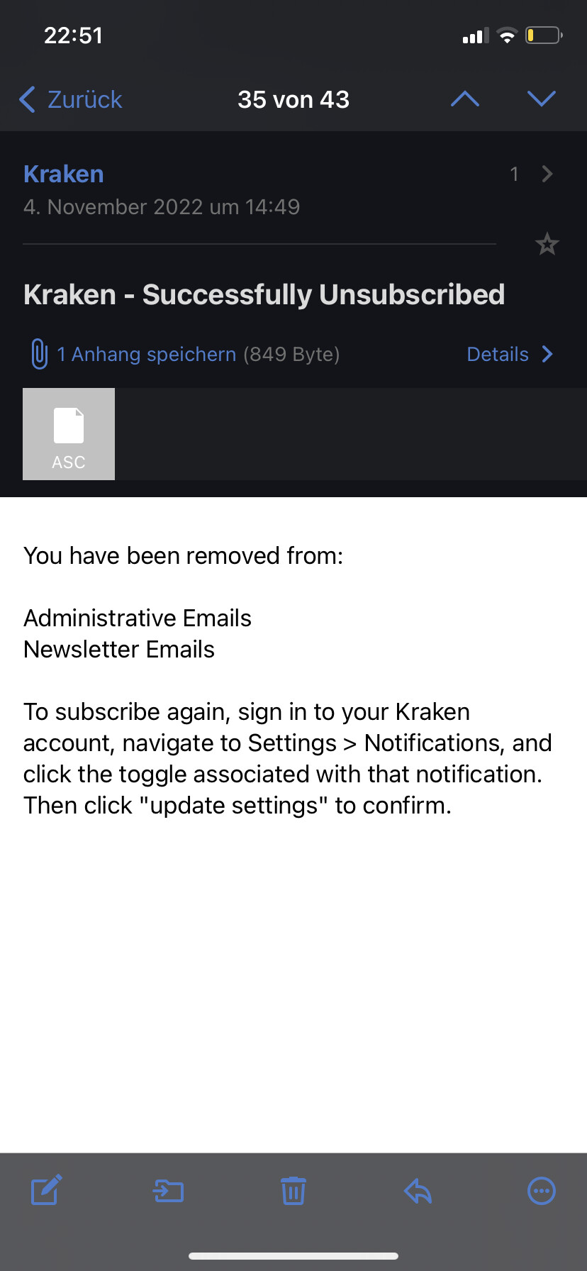 4.) Der Angreifer hat die Mail von Kraken mit dem Hinweis auf die Abhebung aus Deinem Postfach gelöscht
