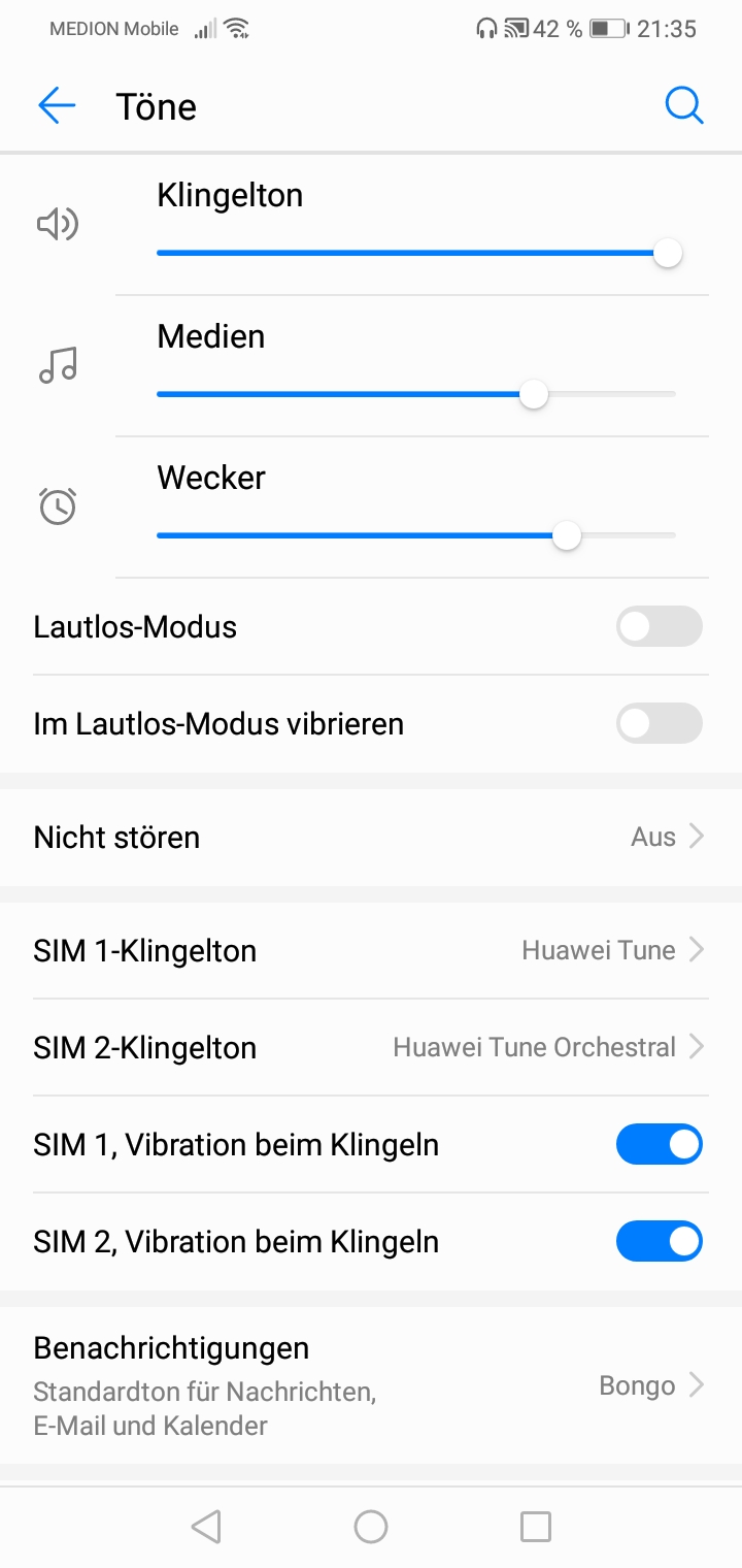 Also auf meinem Telefon gibt es 4 Einstellungen für den Ton: