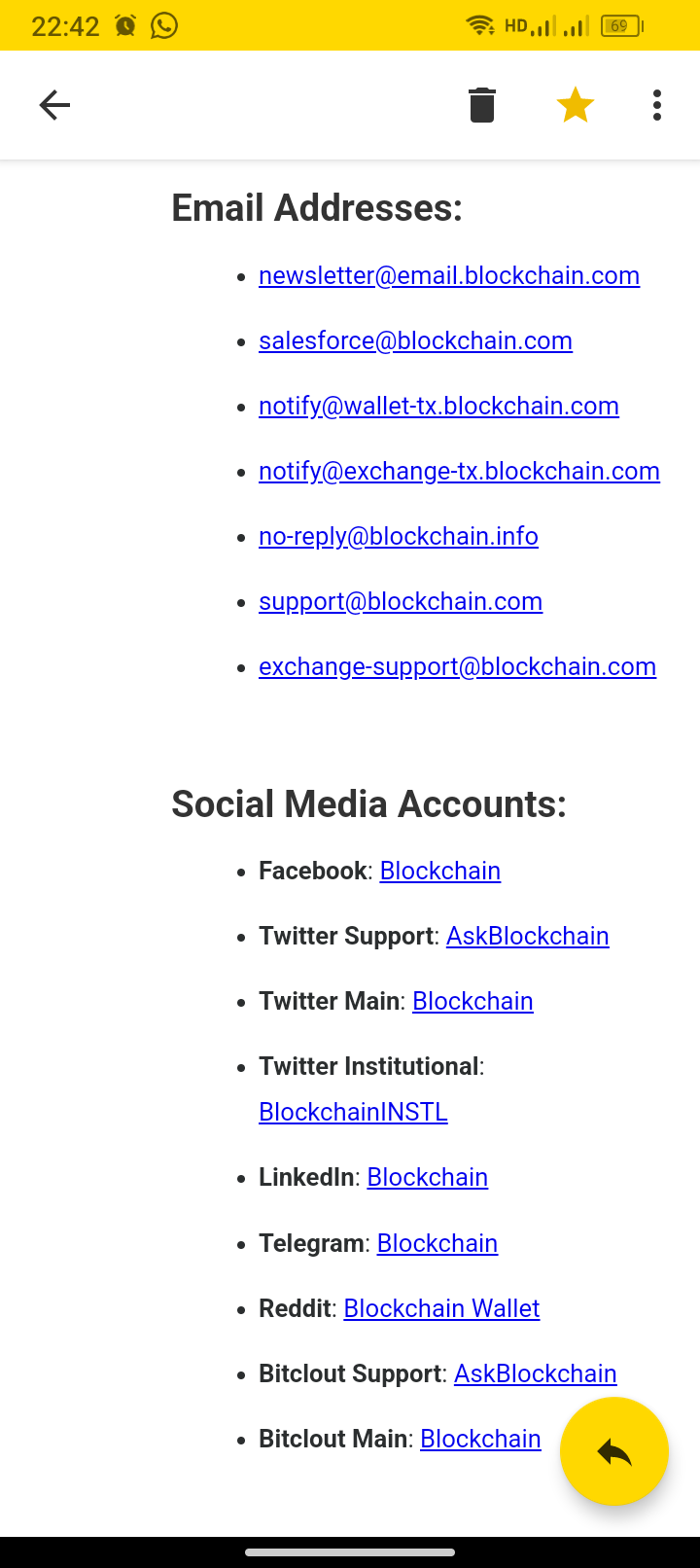 Das oben sind die richtigen E-Mail Adressen von der Blockchain. Hier habe ich nämlich auch eine Abrechnung bekommen, welche sich als Blockchain ausgaben. Natürlich stammte diese E-Mail ebenfalls nicht von der richtigen Blockchain. Also bitte wachsam bleiben!