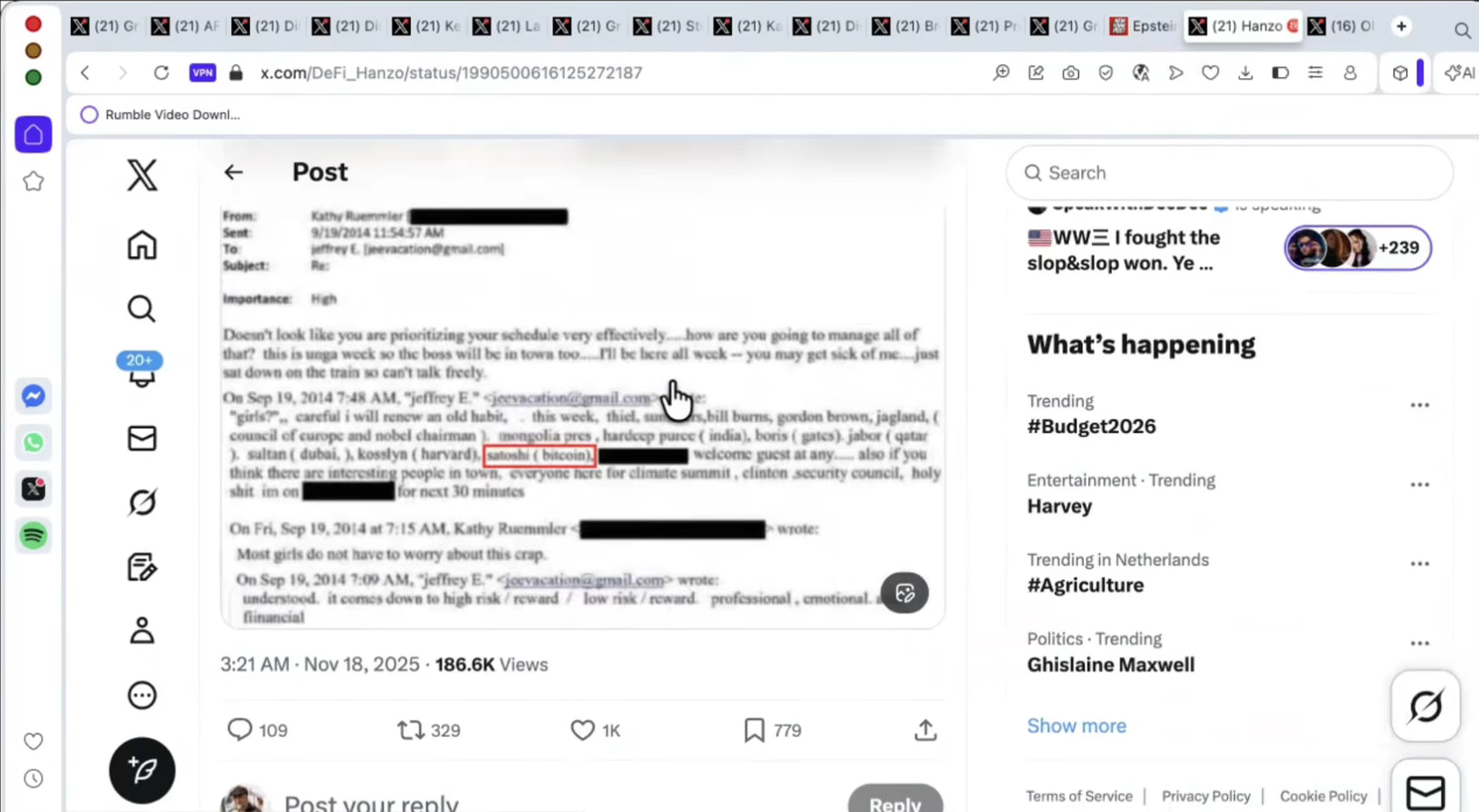 Kurz: Im Email Verkehr von Jeffrey Epstein ist die Rede davon, das Satoshi Nakamoto (Bitcoin) als Gast auf einer von Epsteins Veranstaltungen gewesen sein soll.