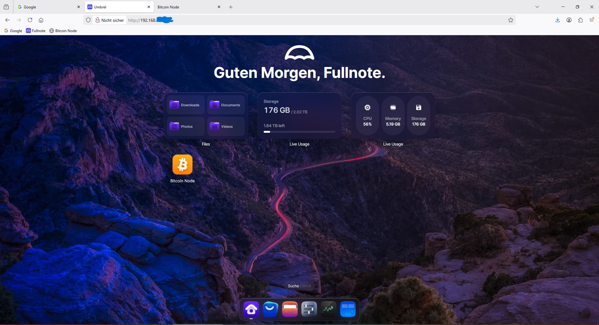 Solange ich meinen PC laufen lasse sehe ich mittels Firefox und der IP Adresse meine Umbrel Seite sowie die Bitcoin Note Seite. Funktioniert alles einwandfrei.