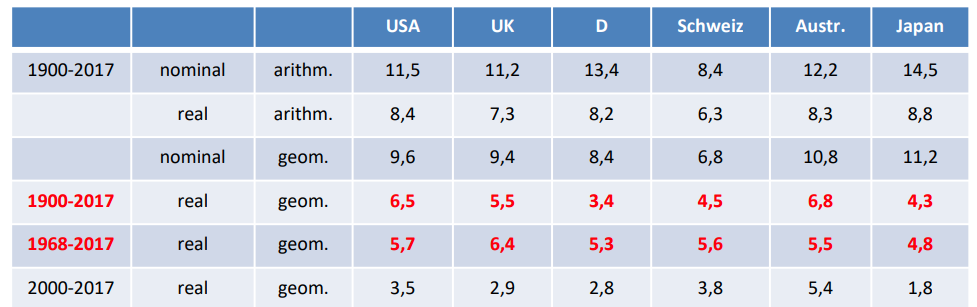 Der weltweite Aktienmarkt (die Welt-AG wie Andreas Beck finde ich schön in seinen Videos sagt, hier etwa https://www.youtube.com/watch?v=vQ1k5ZwTNhQ) arbeitet in Summe immer profitabel. real wohl so im Fall der USA mit im Schnitt 6,5% REAL also nach Abzug der offiziellen Inflation (Welche Rendite Aktien seit 1900 erzielt haben | DAS INVESTMENT). Andere schlechter performende Aktienmärkte mit eingerechnet, ist eine Annahme von 5% Realrendite durchaus legitim.