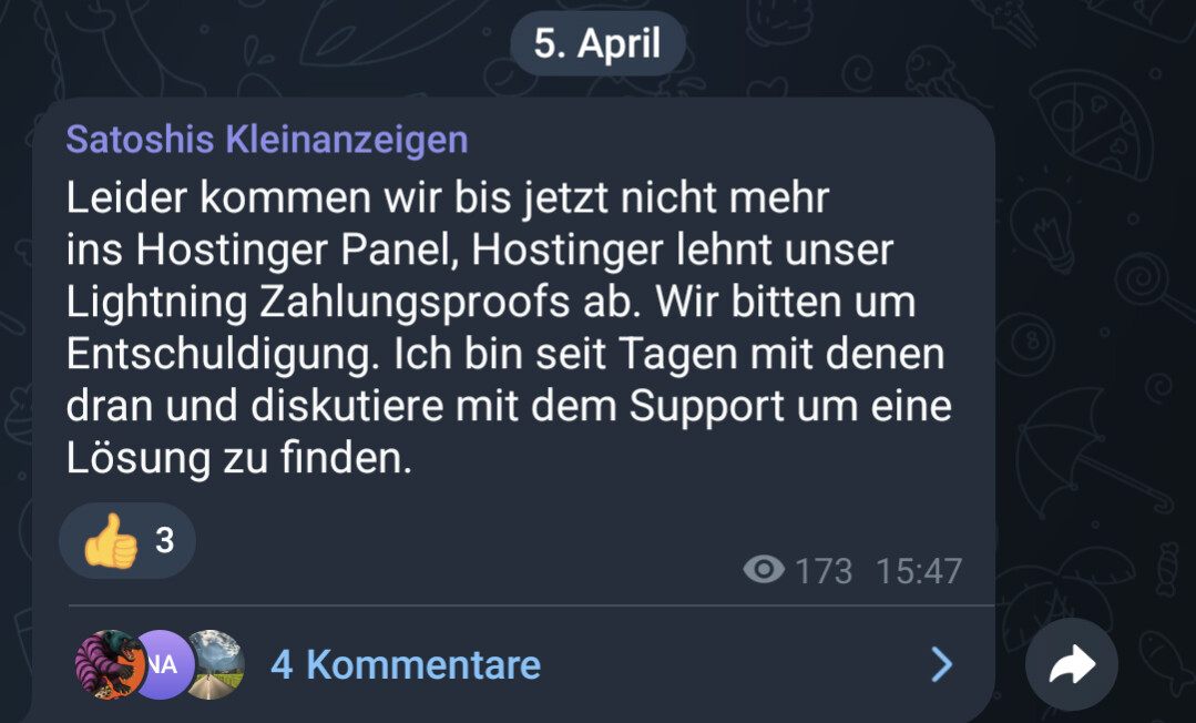 Aber man darf dabei eines nicht vergessen: Ihr gebt eure bitcoin/satoshis an diese große Firmen, die behaupte ich mal eh schon viel haben. Die tauschen es im Hintergrund um und der Händler bekommt Fiatgeld. Schöner wäre es, die Shops und Restaurants usw direkt zu unterstützen und dort hinzugehen wo direkt BTC akzeptiert wird. Und wenn’s nicht akzeptiert wird, wenigstens drauf aufmerksam zu machen und helfen wo’s geht. Bitrefill usw sind komfortable Lösungen, die am Ende aber nur dir helfen deine Coins loszuwerden, aber sie helfen nicht der BTC-Adoption.