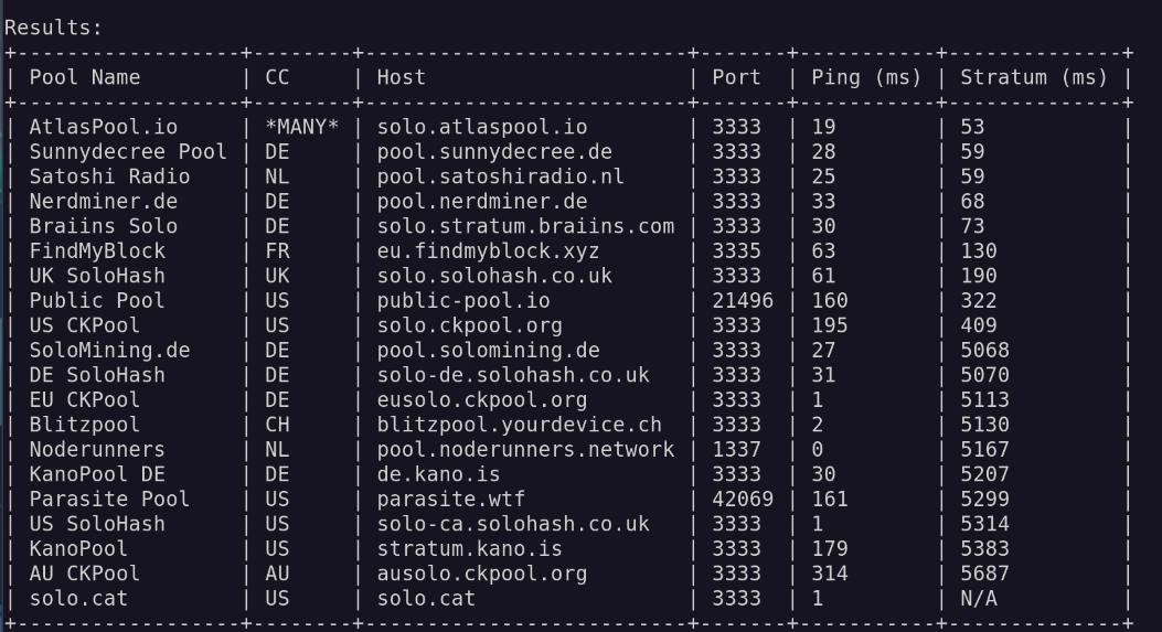 | Nerdminer.de | DE | pool.nerdminer.de | 3333 | 24 (22-26) |
