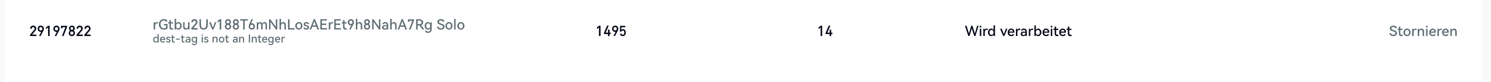 Habe mal wieder ein Problem Coins von einer Exchange (hier Gate.io) auf meine Ledger bzw. XRP Wallet zu senden. Mehrfach habe ich nun versucht meine Sologenic Token (XRP Token) auf meine Ledger Adresse zu schieben - es wird aber immer auf Gate.io angezeigt das :